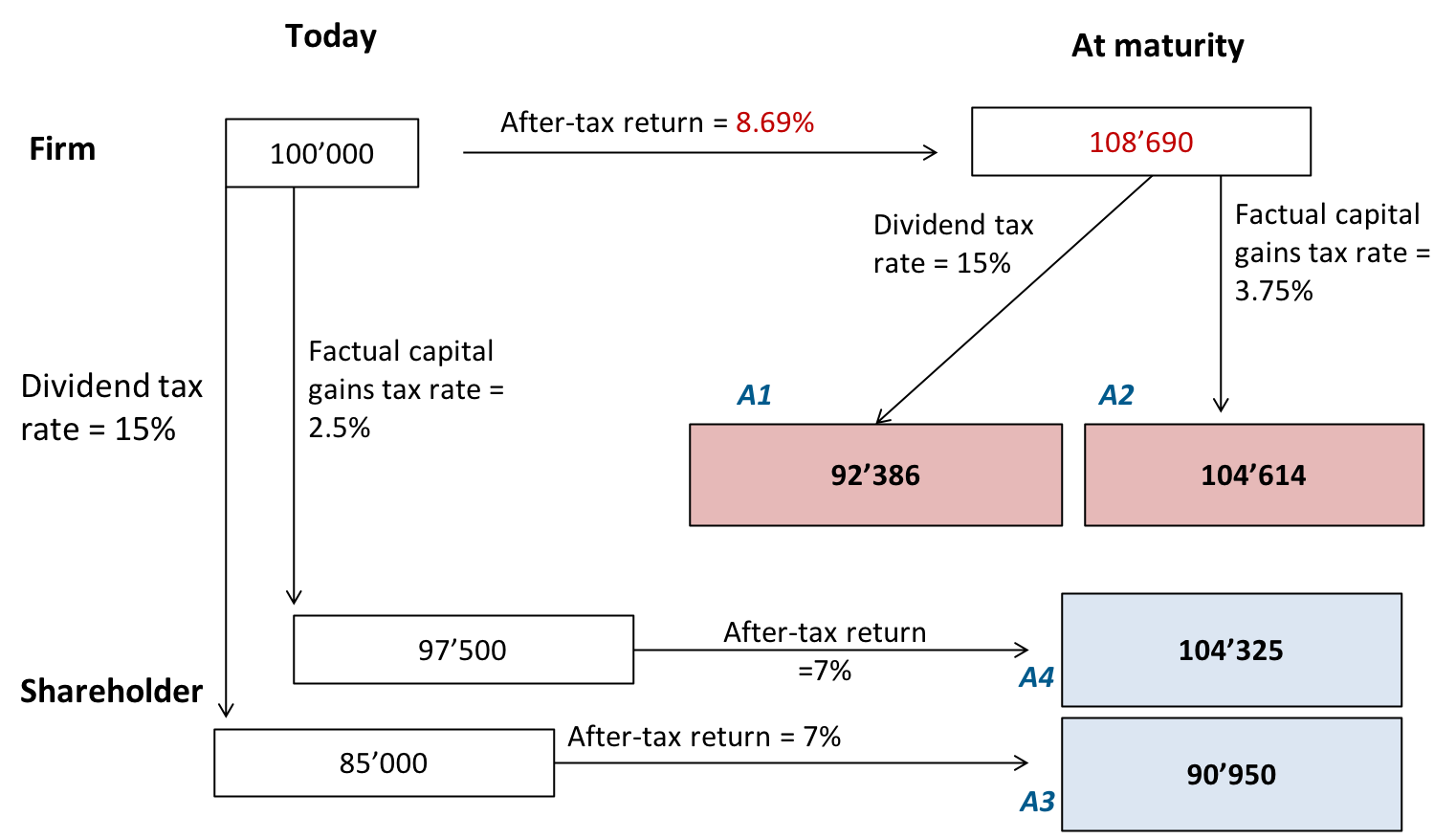 - A4: The firm repurchases shares and shareholders then invest on their own