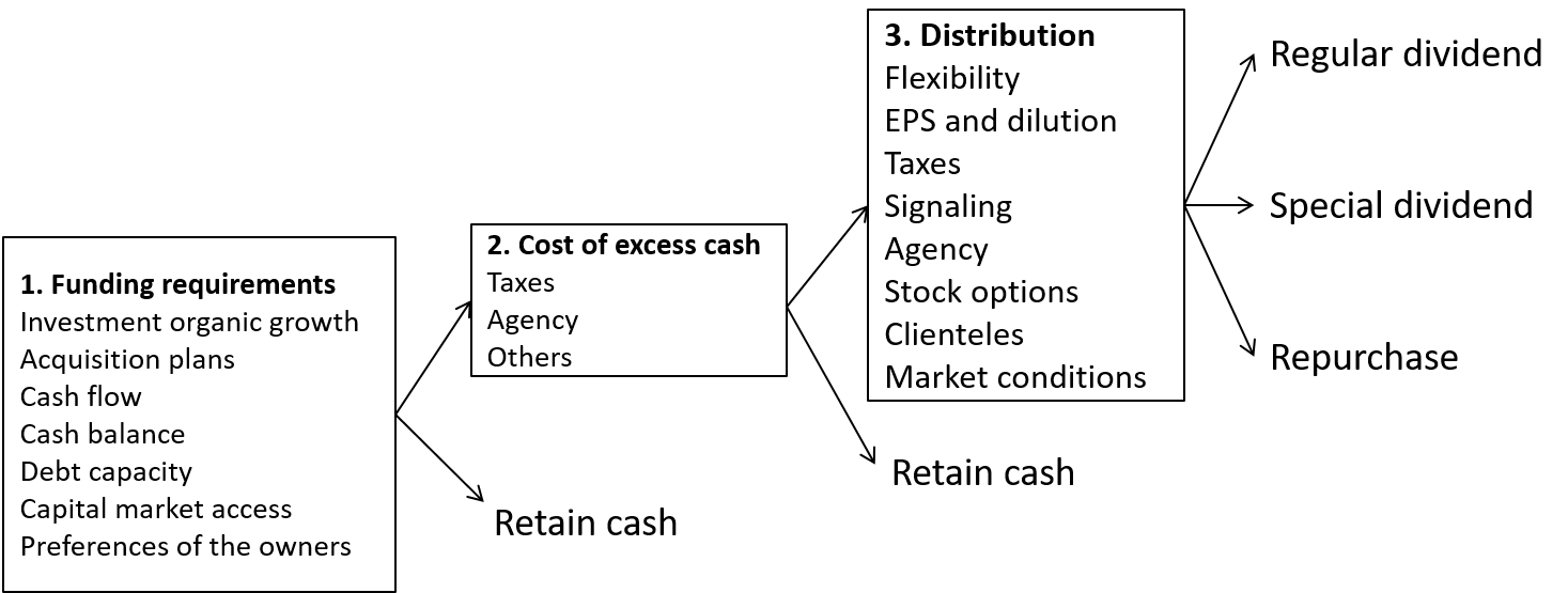 When thinking about the payout policy, it often makes sense to structure the thoughts around the following three dimensions: