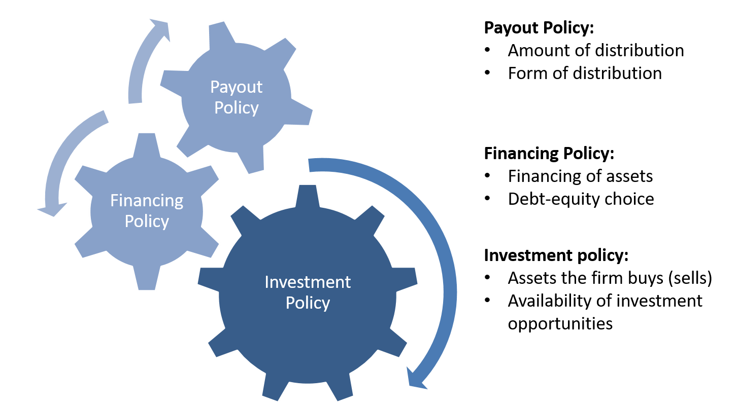 All these considerations make clear that the firm's payout policy cannot be considered in isolation. It is strongly interlinked with the firm's investment policy as well as its financing policy, as the following figure illustrates: